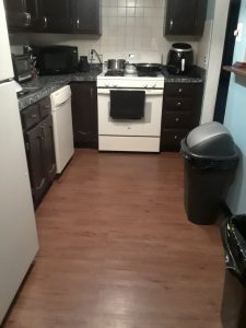 “I bought flooring from your company a year ago this month. It was the Medium Oak tiles that are 6″ x 36”. I was wanting to put them on a cement floor in my children’s rooms and finally got around to it. I first primed the floor with Henry 336 floor primer. The room I was tiling is about 12′ x 14′. I LOVE the tile, it has a great adhesive and goes down easily and I did it myself quite quickly. It is beautiful, I am MORE than happy with it! I have two pictures, the first one is a work in progress. The 2nd one is floor finished. I would recommend this flooring to ANYONE! Easy to do by yourself. I had never done this before but had taken on other projects, so I am a do it yourself-er. Thanks so much for a GREAT PRODUCT!! Nancy H. She did it herself!