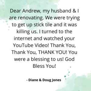 “You guys offer a great product and I am very very pleased. The tile went down very smooth and effortlessly. I will plug your business in any way that I can. Thanks Agian! You have a customer for life in me!”-Steve Reinhart